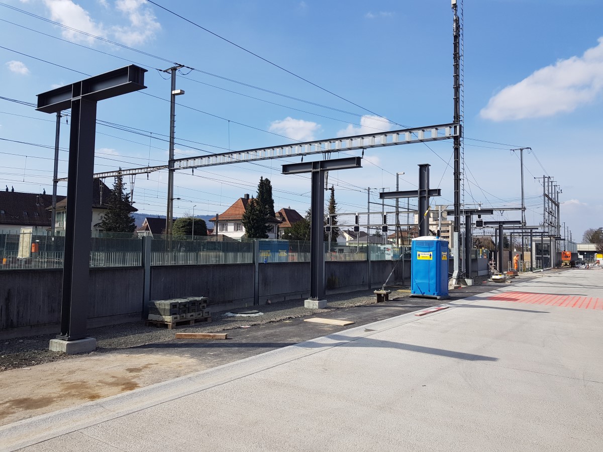 Am 08. März 2021 haben die Montagearbeiten für die beiden Dächer in Wohlen begonnen. In der KW 10 wurde die Stahlkonstruktion des Kundencenterdachs mit einem LKW-Kran montiert. Im April folgt der Montagestart des grossen Bushofdaches, welches das Aushängeschild des neuen Bahnhofs werden soll.