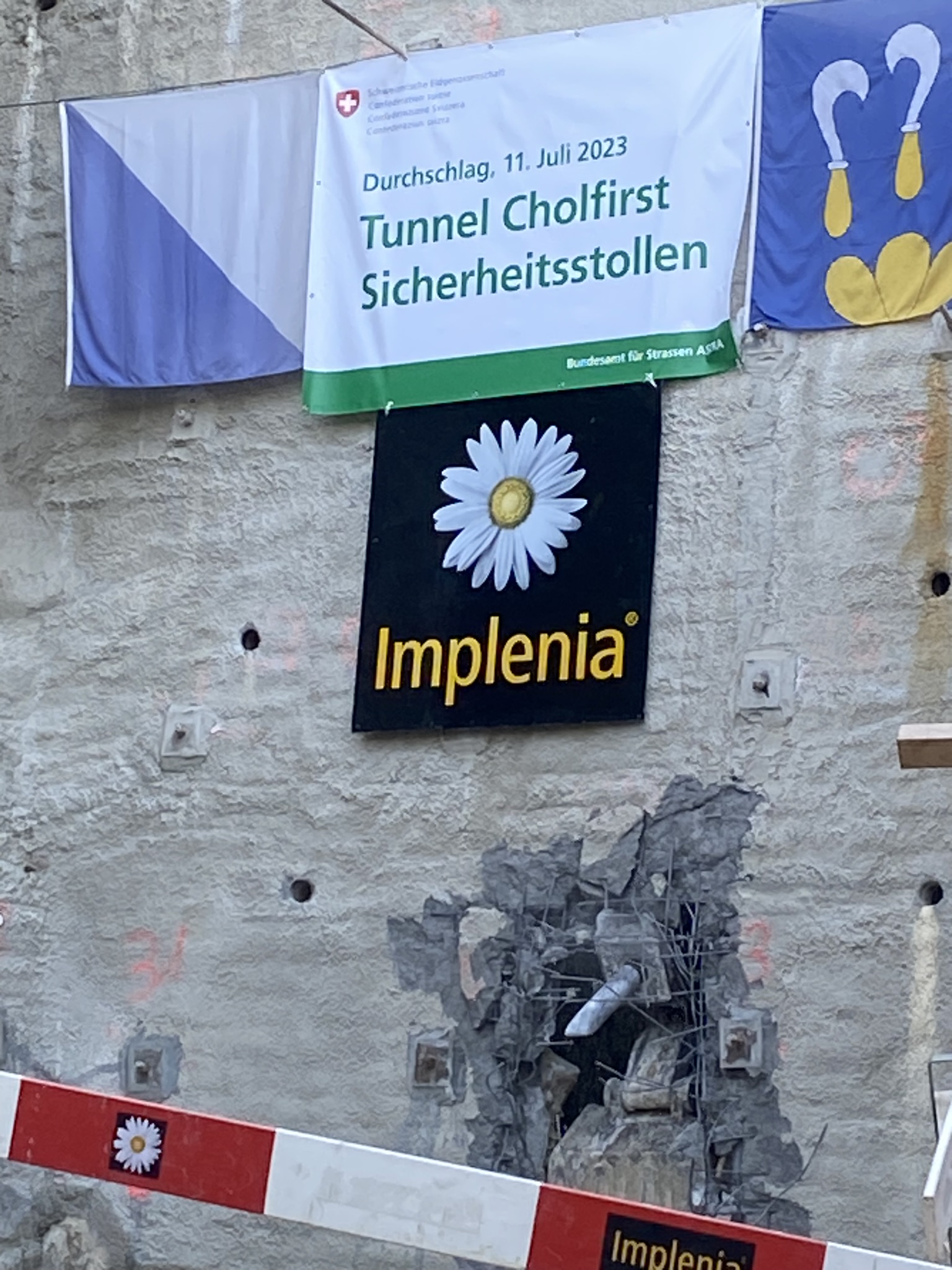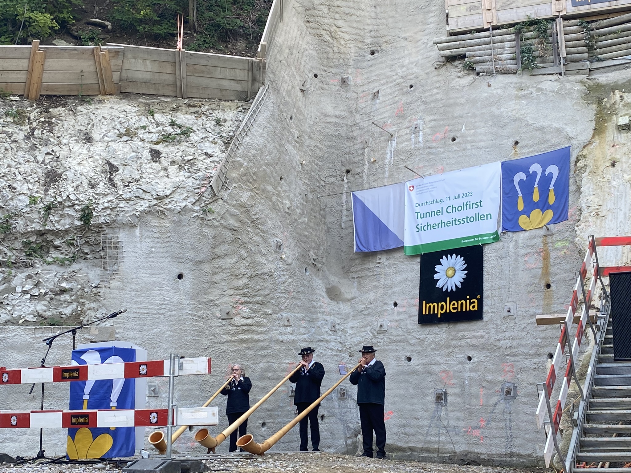 Am Dienstag, den 11. Juli 2023, konnte der erfolgreiche Durchschlag am Nordportal des 1'200 m langen Sicherheitsstollens mit rund 100 Projektbeteiligten gefeiert werden.