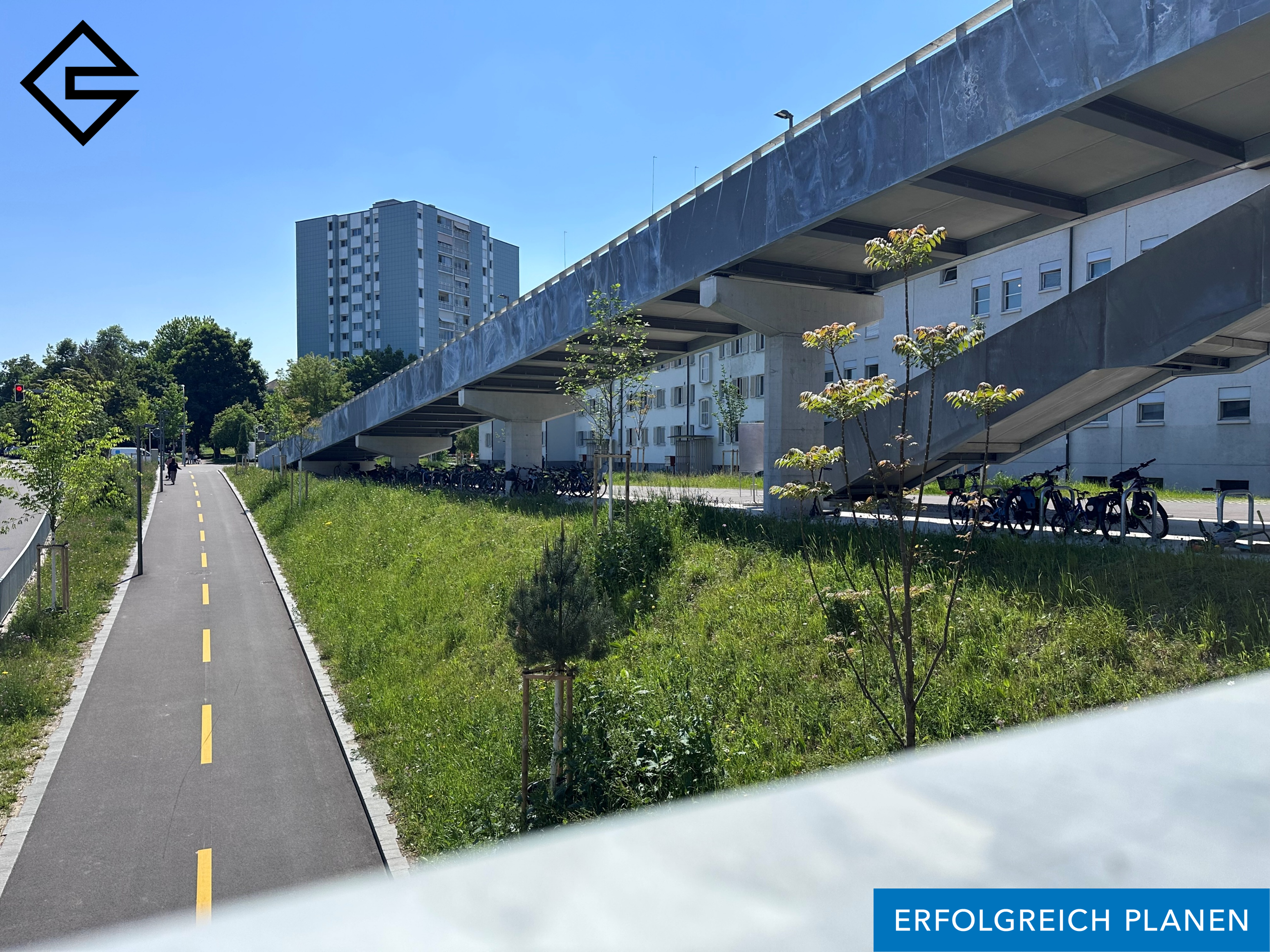 Mit dem neuen Überlandpark in Zürich-Schwamendingen wurde ein städtebauliches und landschaftsplanerisches Vorhaben von überregionaler Bedeutung realisiert. Der rund 940 Meter lange und rund 30 Meter breite Park liegt direkt über der Einhausung der Nationalstrasse A1 und verbindet Quartiere, die bislang voneinander getrennt waren.