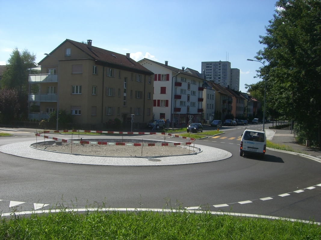 Ausserhalb des Kreiselbauwerkes wurden im Strassen- und Gehwegbereich die Fundationsschicht teilweise ausgewechselt, die Randabschlüsse neu erstellt und der Belag erneuert. Weiter wurde die Strassenentwässerung im gesamten Projektperimeter neu erstellt.
