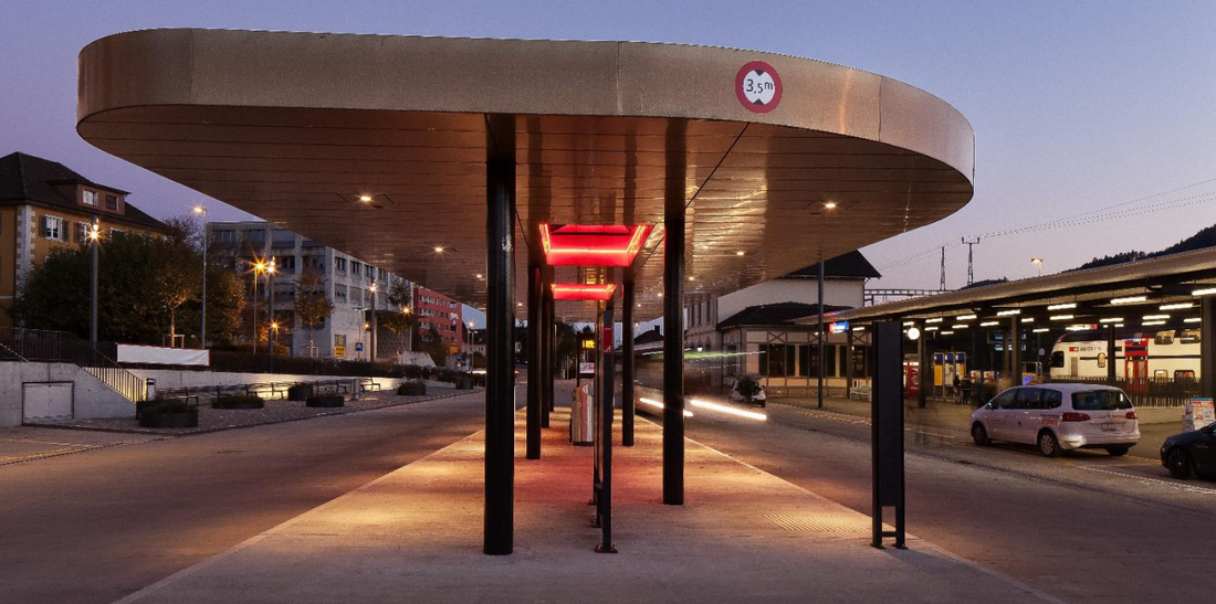 - Bahnhofvorfahrt mit neuer Bushaltestelle und neuem Bus-Perrondach.