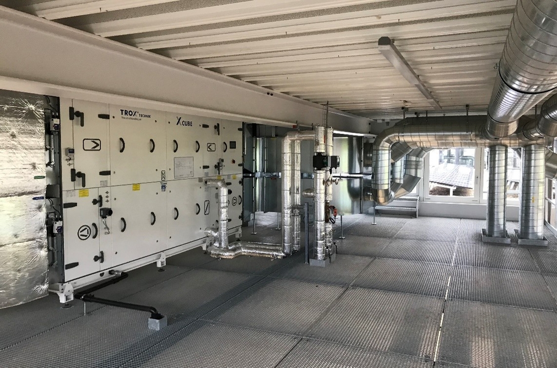 Auf eine aktive Kühlung der Anlage kann verzichtet werden. Im Rahmen einer detaillierten Simulation konnte nachgewiesen werden, das mit einer aktiven Nachtauskühlung die Grenzwerte an den Sommerlichen Wärmeschutz eingehalten werden können. Im weiteren ist auf dem Dach eine PV Anlage installiert. Der grosse Regenwasseranfall auf der Abstellanlage und auf dem Dach wurde mit einer eigenen Retentionsanlage gelöst.